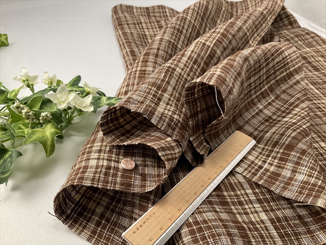 b0828 綿麻スラブチェックブラウン ¥490/50cm