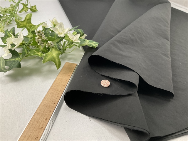 タイプライターの様なハリ感を持ち薄手ながらしっかりと目が詰まった防風、撥水の機能のある生地です。