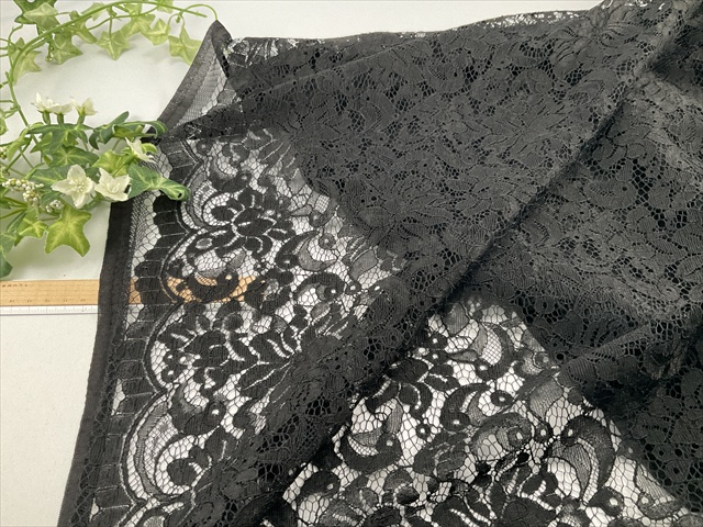 フォーマル用に使用されたブラックレースでほど良いハリ感とドレープ性もある生地です。