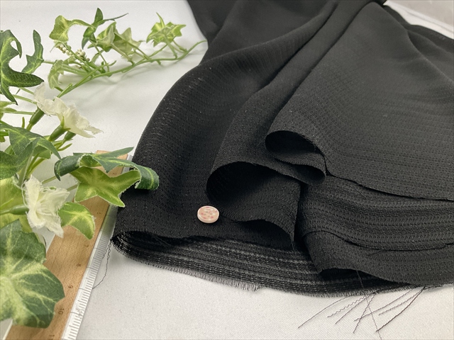 薄手で透け感たっぷりのフォーマルブラックの合繊ジョーゼットの生地です。