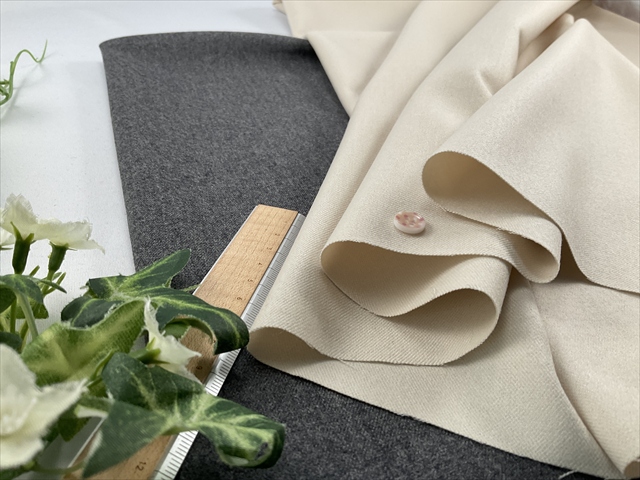 ウールの中ではやや薄手でほんのわずかにストレッチが効いたウールサキソニーの生地です。