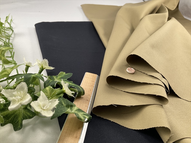 しっかり目が詰まっていて滑らかでわずかに光沢のある生地はパンツはもちろんスカートやワンピース、ジャケットにもおススメです。