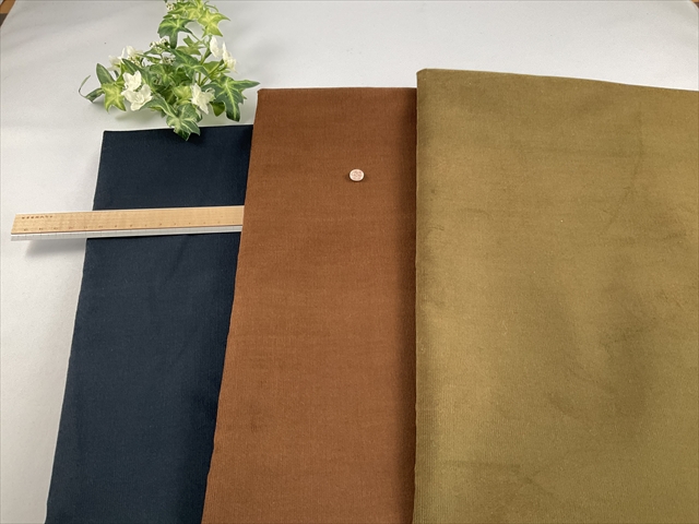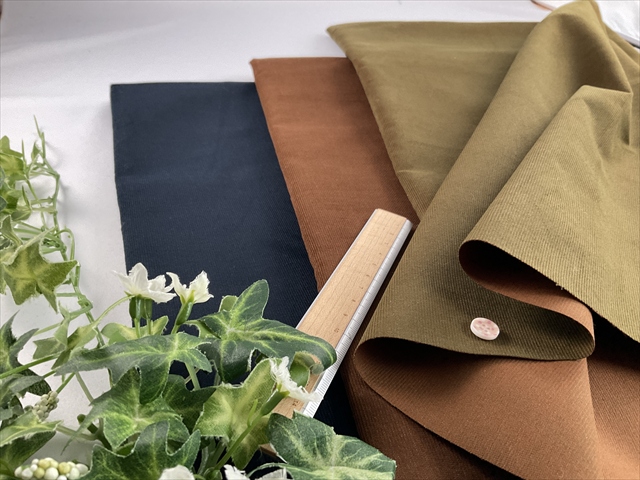 透け感も無くしっかり感のあるコーデュロイなのでボトムスにおススメの細ウネのコーデュロイの生地です。