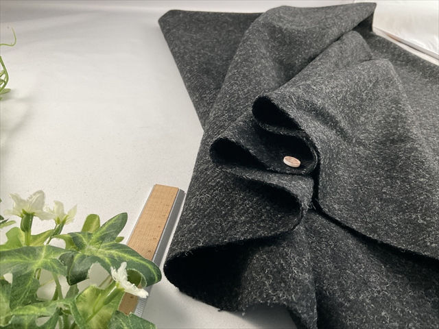 綾織りですが起毛感があるのであまりはっきりと綾は見えない感じでブラックの杢調の風合いが良い感じの生地です。