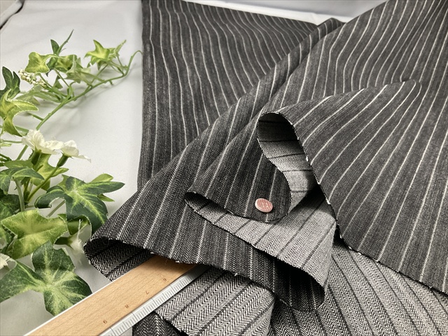 ピンストライプの白糸と白抜け感も良い感じの風合いでしっかり丈夫な風合いです。