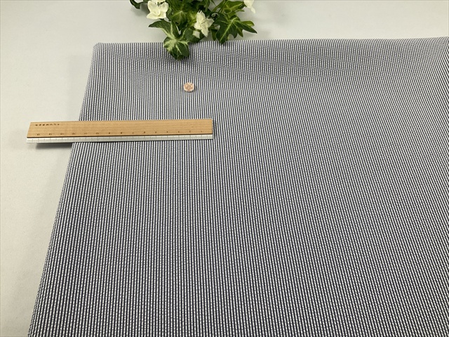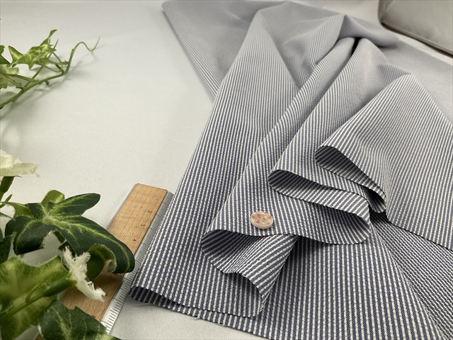 やや薄手でわずかに透け感が残る程度のポリエステルのサッカーストライプの生地です。