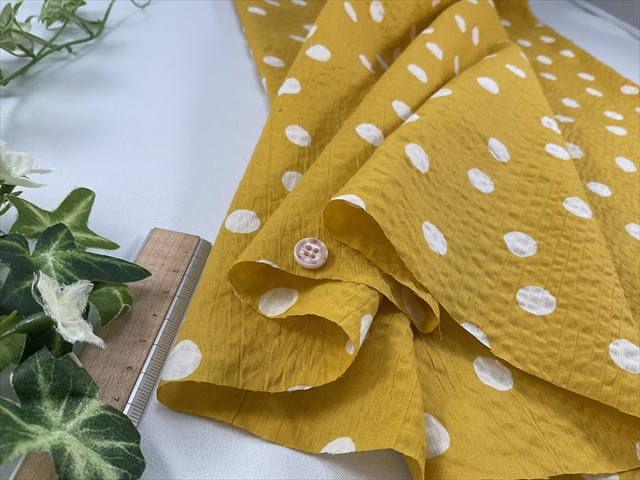 c0424 綿ローンミラクルウェーブ水玉イエロー ¥440/50cm
