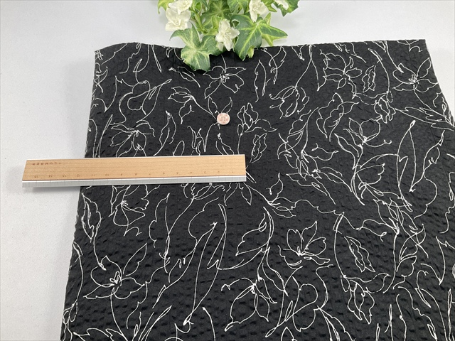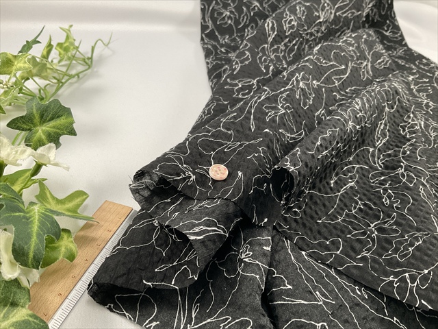 c0438 綿ローンミラクルウェーブブラック線画 ¥440/50cm