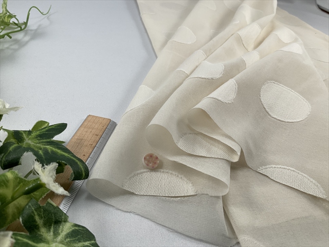 c0449 綿ボイルカットジャガード水玉生成り ¥440/50cm