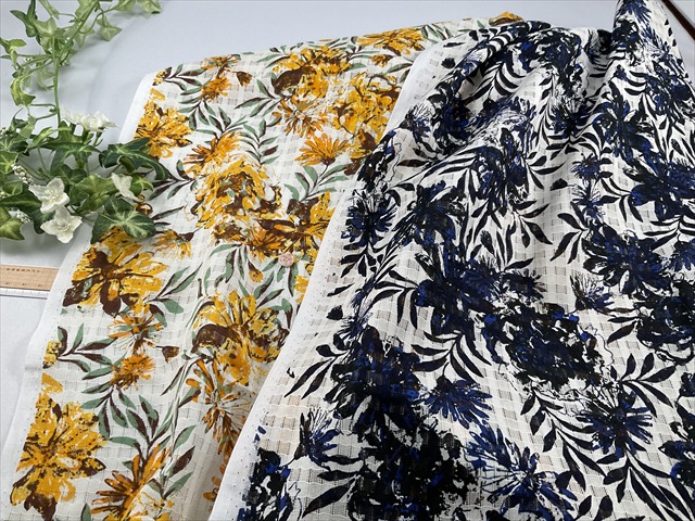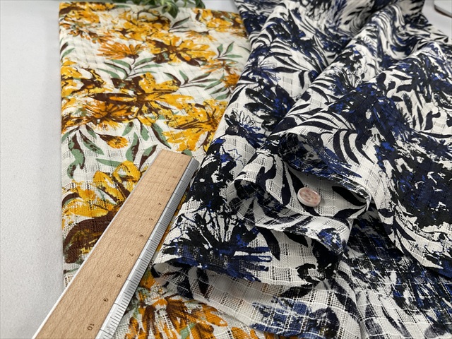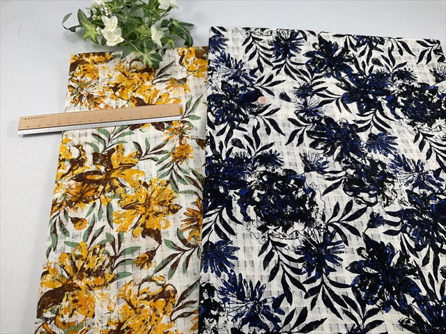 チェック状に地模様がありフラワープリントが施されています。