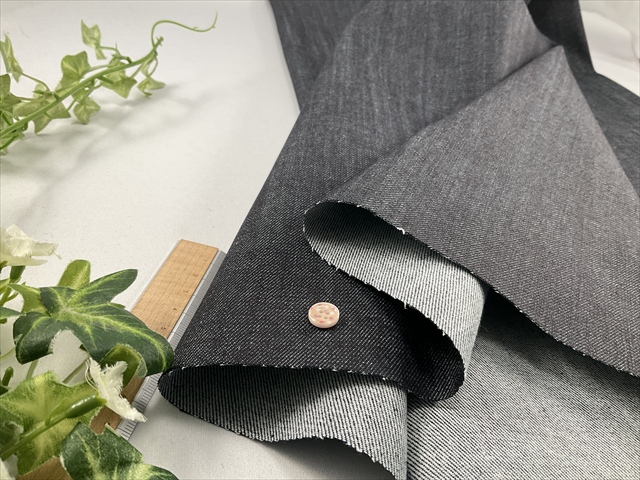 中程度の厚さで中程度の伸びと戻りのストレッチが効いたムラ糸デニムの生地です。