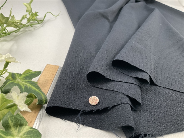 中~やや薄手でわずかに透け感が残る程度のポリエステルのサッカー生地です。