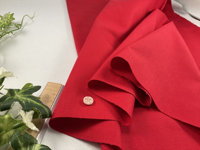真っ赤な色合いとツイルのしっかり感が良い感じの生地です。