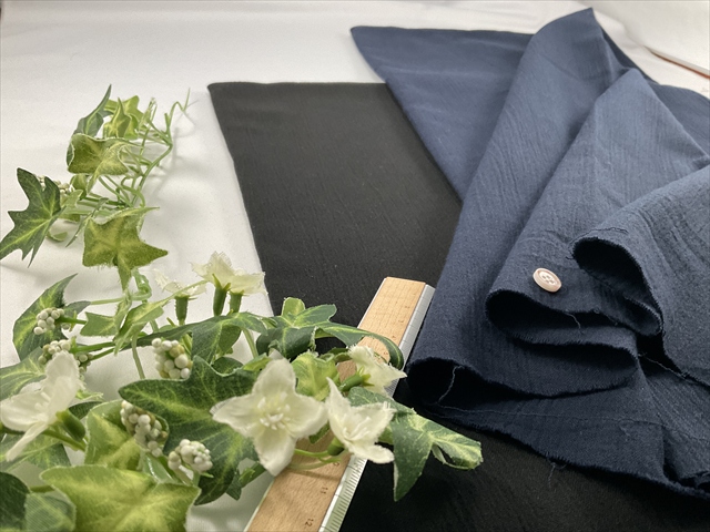ドレープ性もあり綿の優しい肌触りは作務衣やパンツはもちろんブラウスやスカート、ワンピースと幅広く使えそうです。