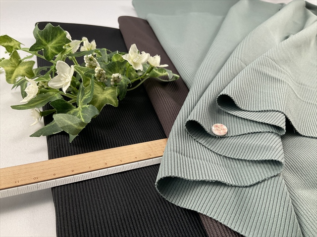 中程度の厚さで中程度の伸びのポリエステルのリブ編みの生地です。