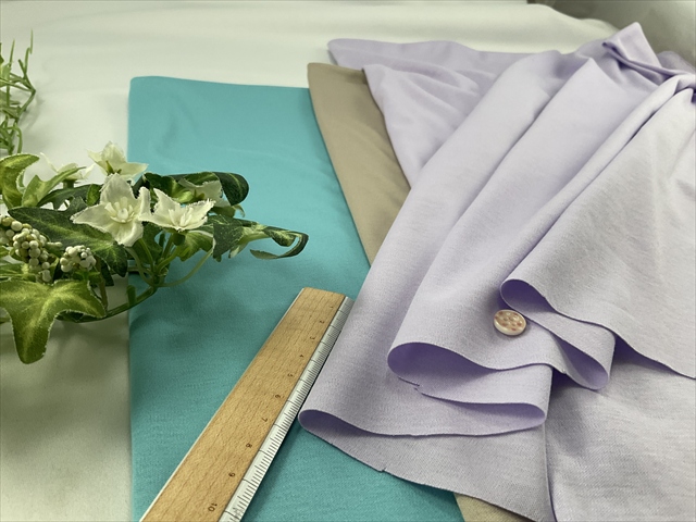 中程度の厚さで中程度の伸びのスムースニット生地です。