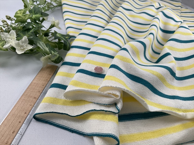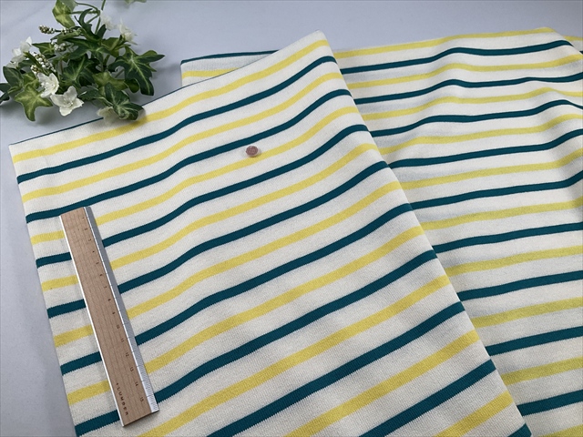x0747 イエローグリーンボーダー天竺 ¥490/50cm