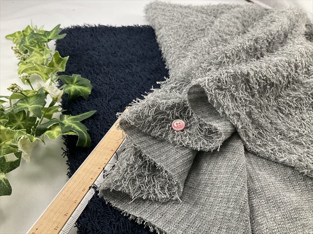 中程度の厚さであまり伸びないタイプのフリンジ調の糸が可愛らしい生地です。