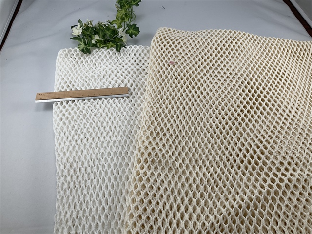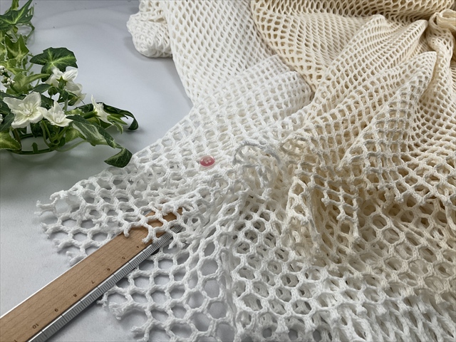 中程度の厚さで中程度の伸びの大きなメッシュのニット生地です。