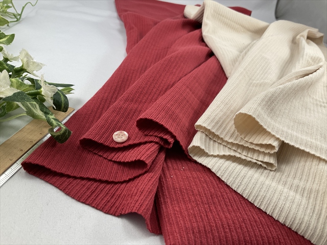 中~やや薄手で良く伸びやんわりと戻る縦横どの方向にも伸びる2WAYストレッチのテレコニット生地です。