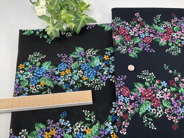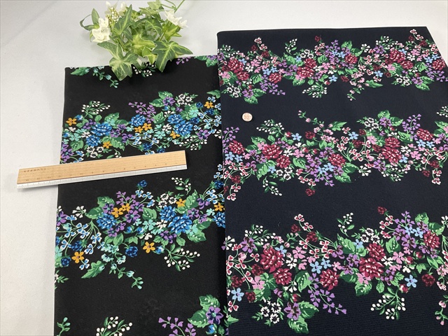 ダークネイビーは黒に近い色合いです。写真右ワインの小花の方がダークネイビーになります。