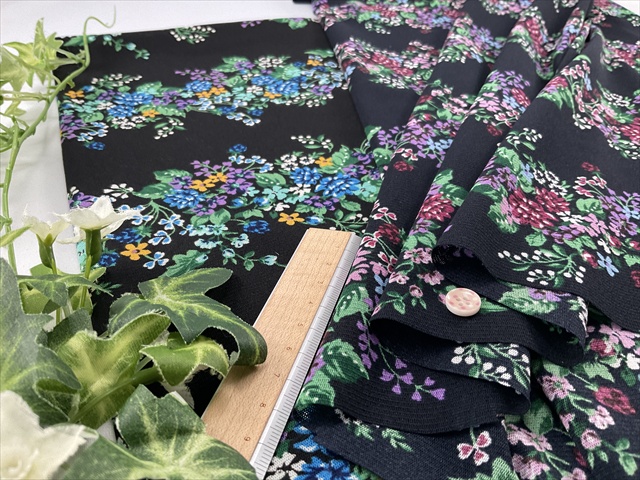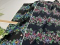 透け感たっぷりのメッシュ状の生地に鮮やかなフラワープリントが良い感じの生地です。