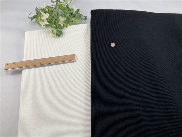 中程度の厚さでやや良く伸びしっかりと戻るテレコリブの生地です。