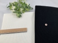 ほぼ透け感も無く、従来のテレコよりもストレッチ性に富んでおり生地幅も広いので身頃にも使いやすいテレコリブです。