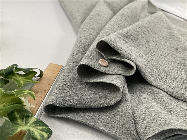 ほぼ透け感も無く、天竺の裏面を使用したムラ糸感のある風合いです。