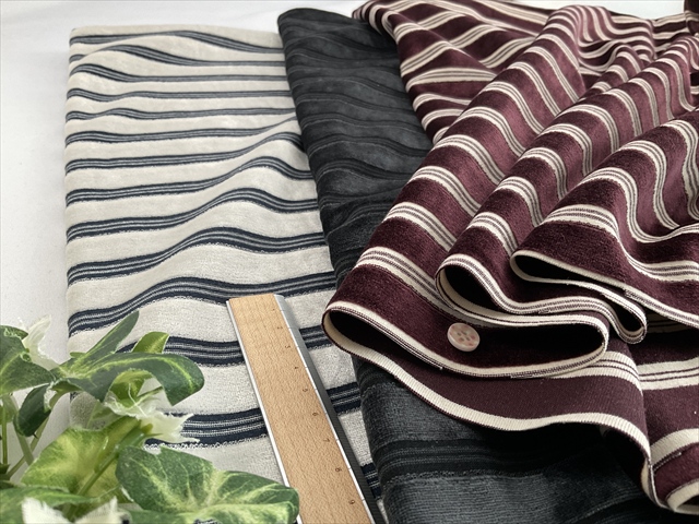 ほぼ透け感も無く、ベロア起毛の部分と天竺の部分があるわずかに凹凸のあるボーダーニット生地です。