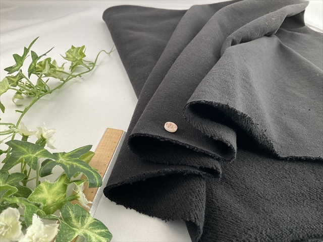 やや厚手であまり伸びないタイプの裏毛パイルのトレーナー生地です。