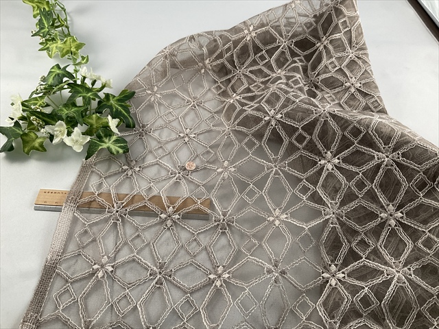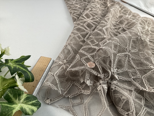 薄手であまり伸びないタイプのソフトチュールの刺繍レースの生地です。