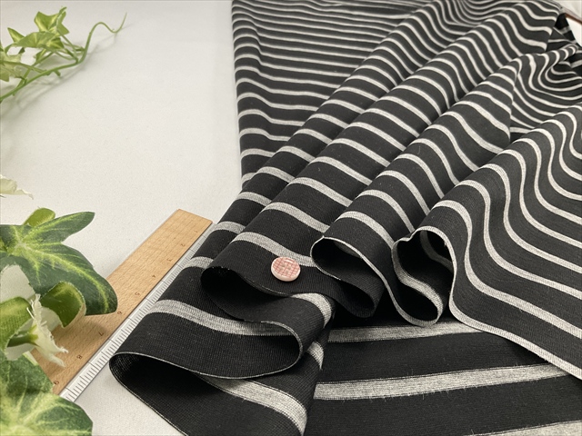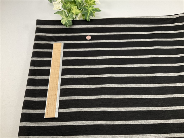 y0108 しなやかボーダー天竺黒グレー ¥440/50cm