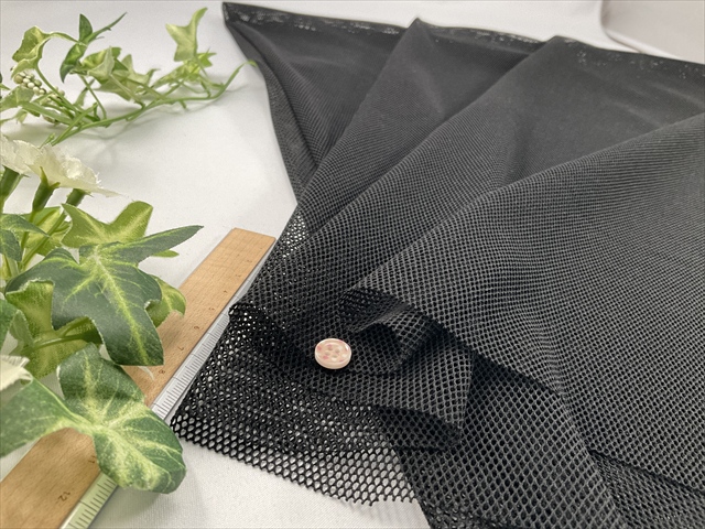 やや薄手で中程度の伸びのメッシュニット生地です。