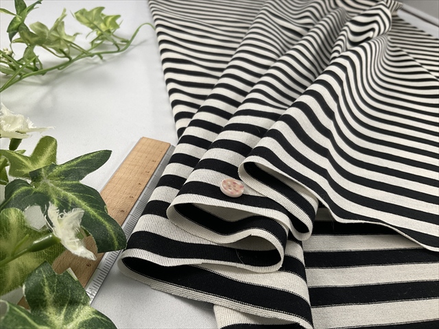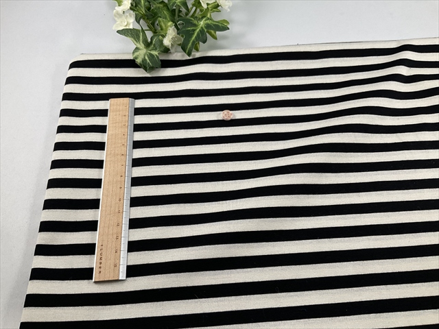y0140 シルケットボーダー天竺生成りブラック ¥390/50cm