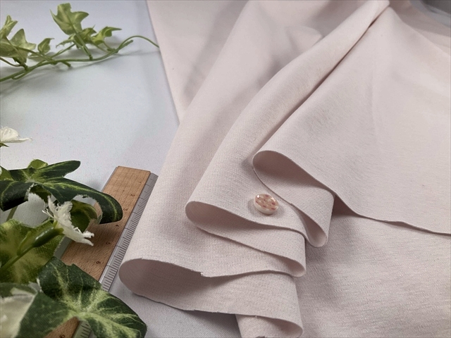淡いピンクベージュの色合いで適度な腰とドレープ性もありオールシーズン使えそうな風合いです。