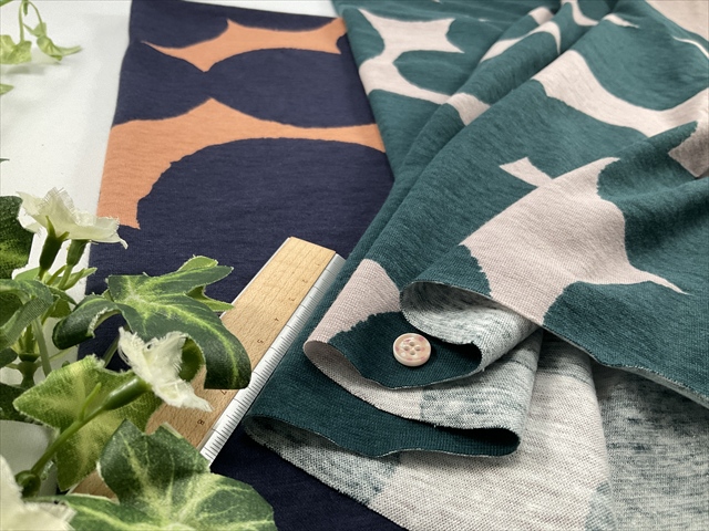 やや薄手で中程度の伸びの天竺ニット生地です。