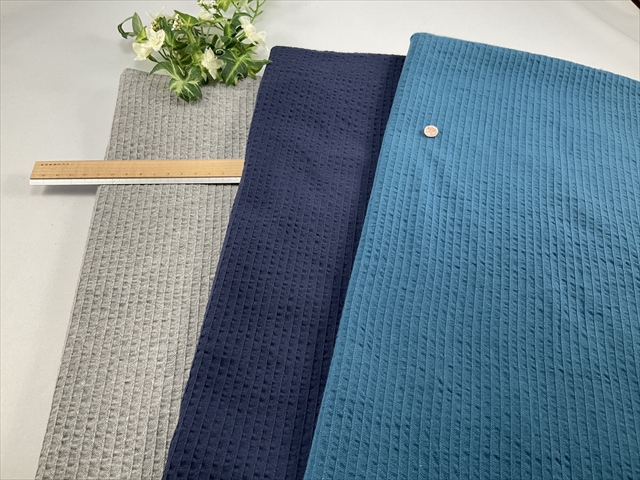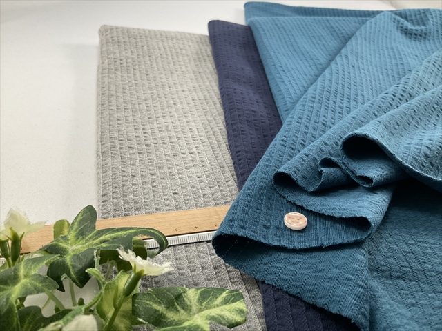ほぼ透け感も無く柔らかな風合いの天竺にリップルの凹凸が良い感じの生地です。