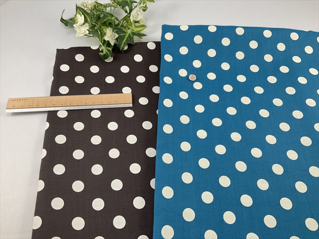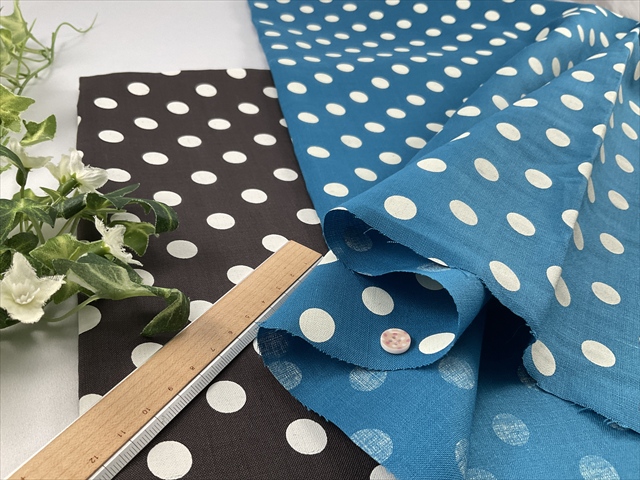 さらっとした麻生地に顔料プリントの水玉が可愛らしい生地です。