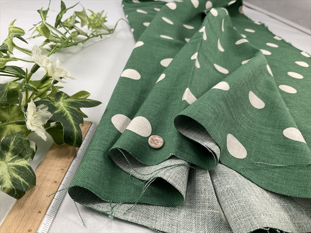 c0159 麻レーヨン水玉プリントグリーン ¥490/50cm