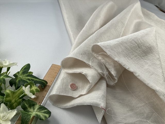 生成りに近いライトベージュの色合いも良い感じでほど良いハリ感と滑らかさ、光沢のある生地です。