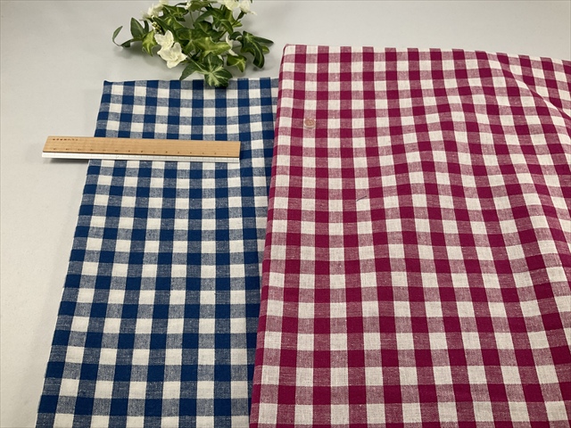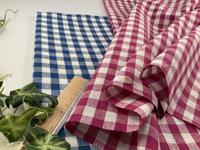 中~やや薄手でわずかに透け感がある綿麻ギンガムの平織りの生地です。