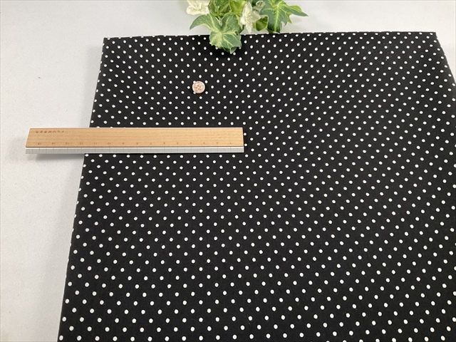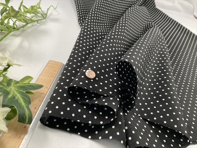 さらっとした清涼感のある平織りの生地で黒ベースに小さな白水玉が可愛らしい生地です。