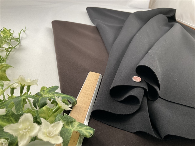 やや厚手で中程度の伸びでしっかりと戻る縦横どの方向にも伸びる2WAYストレッチのダンボールニット生地です。
