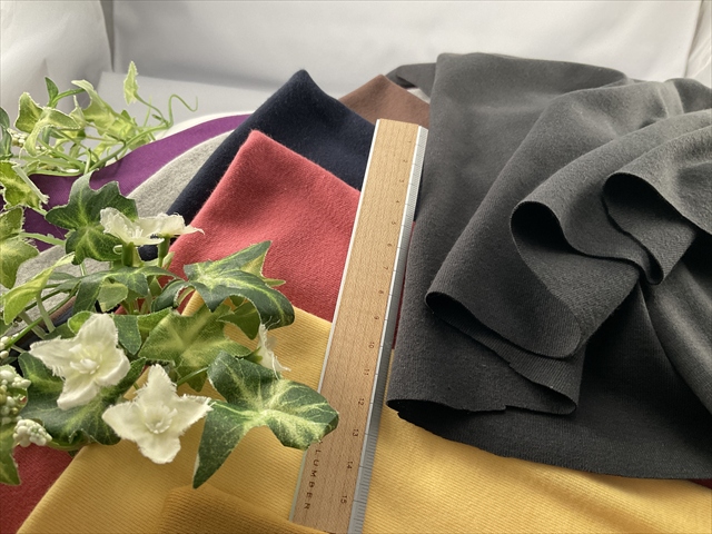 中程度の厚さで良く伸びるタイプのフライスニット生地です。