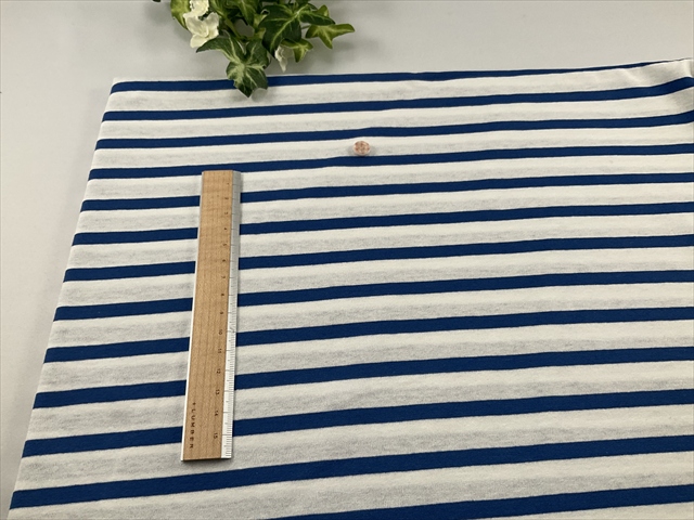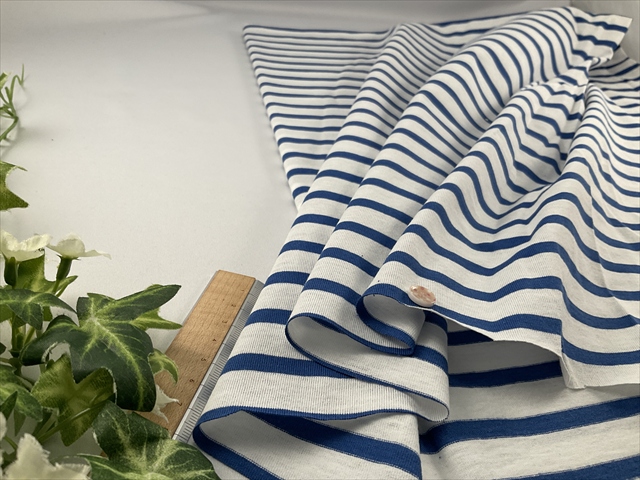 y0090 オフホワイトブルーボーダー天竺 ¥440/50cm