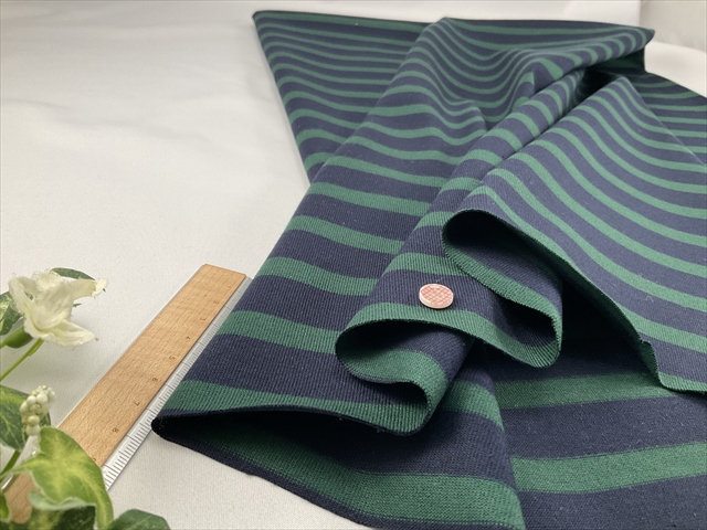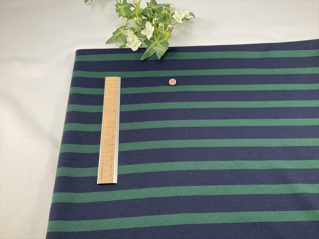 y0091 ダークネイビーグリーンボーダー天竺 ¥440/50cm