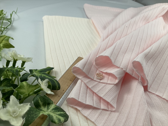 針抜きのトタンテレコですがほど良いしっかり感もあるのでカットソーやタートル、プルオーバーやワンピースにもおススメです。