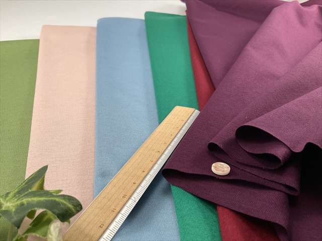 やや薄手で中程度の伸びの天竺ニット生地です。